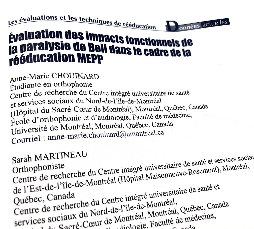 Chouinard, A-M., Martineau, S., Rahal, A., & Marcotte, K. (2020). Évaluation des impacts fonctionnels de la paralysie de Bell dans le cadre de la rééducation MEPP. Rééducation orthophonique, No 282, 105-131.